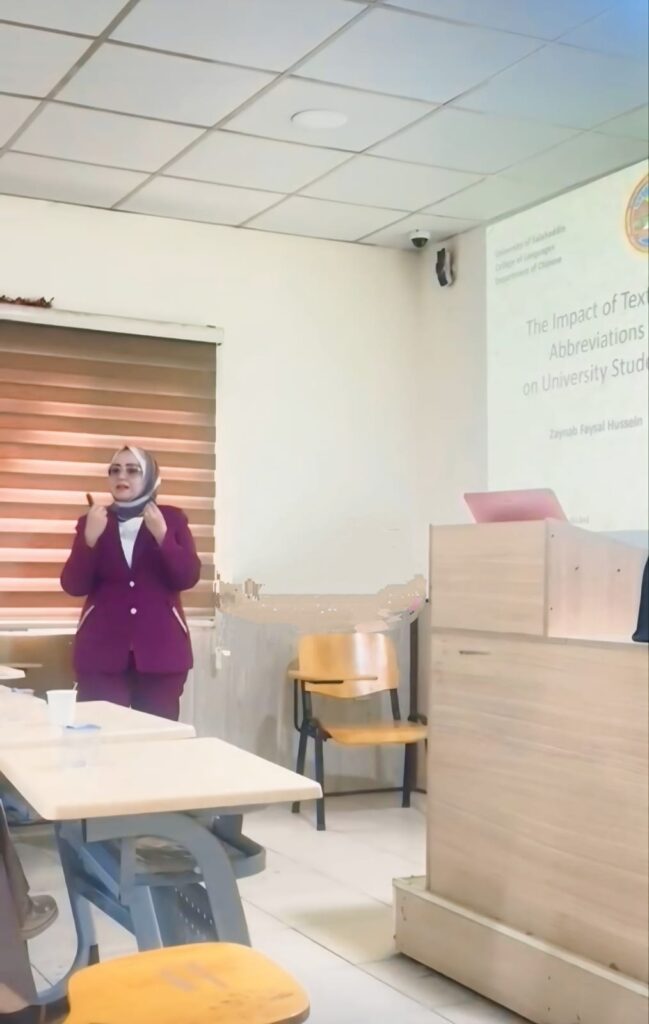 “م.ی.زینب فیصل حسين” مامۆستا لە بەشی زمانی چینی سێمینارێکی پێشکەشکرد بەناونیشانی